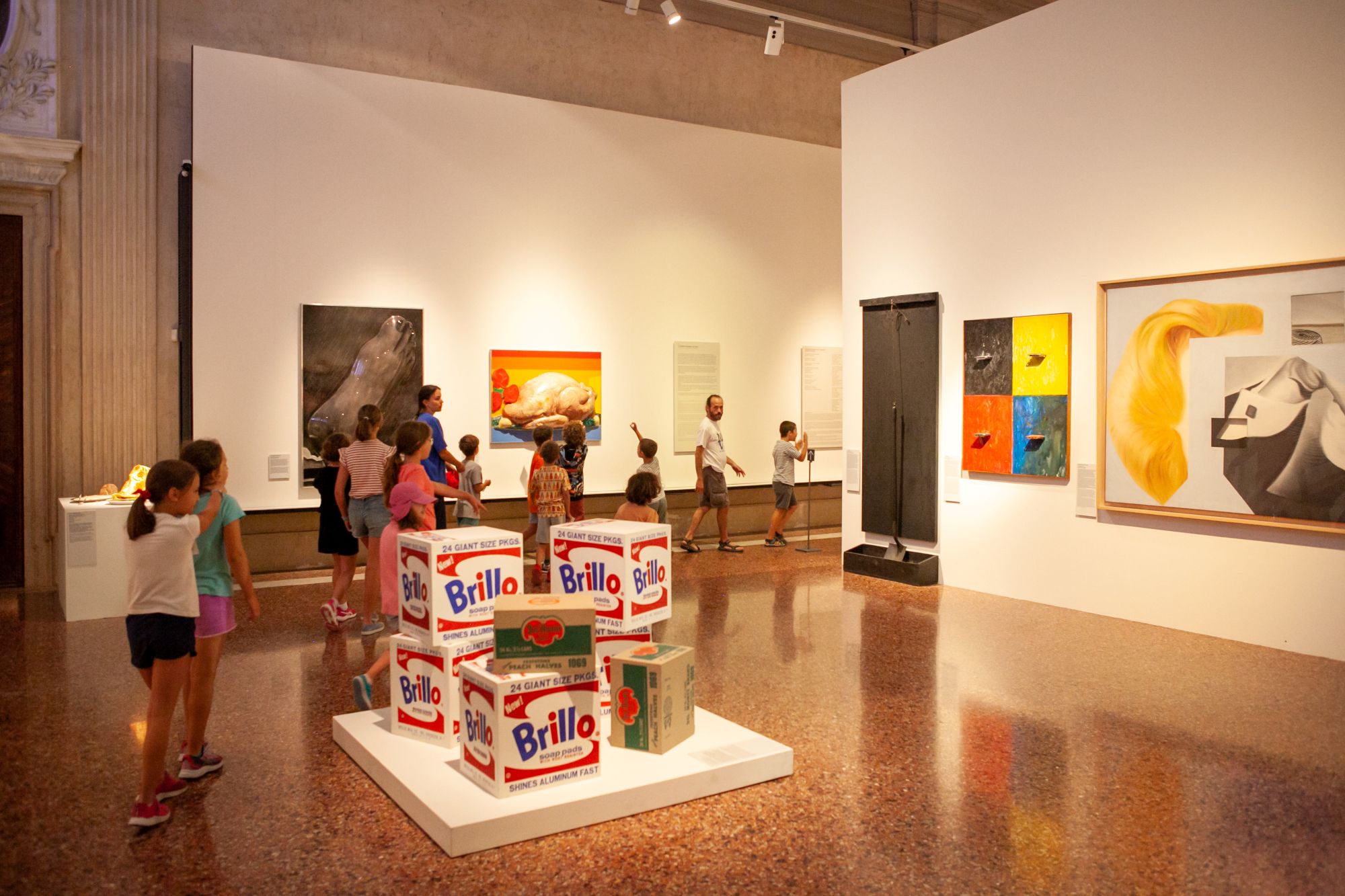 Dopo una visita selezionata ai capolavori di alcuni artisti presenti a Ca’ Pesaro, tra cui Vedova, Pizzinato, Deluigi, Kandinsky, protagonisti della pittura in movimento, detta anche “action-painting”, focalizzandoci sull’utilizzo del colore e sul “gesto” della pennellata, in laboratorio con pennelli e altri strumenti, tra cui anche le mani, sperimenteremo la pittura a metro realizzando un lunghissimo rotolo di tela dipinta che diventerà una grande opera collettiva.